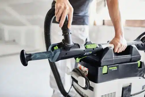 Ergonomic working on walls and ceilings is ensured by the adjustable suction power and the sophisticated T-handle – for easy control, even when working for long periods.