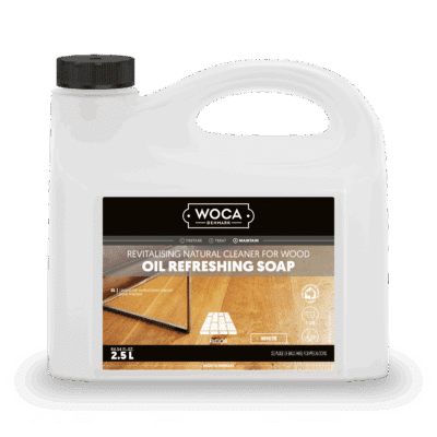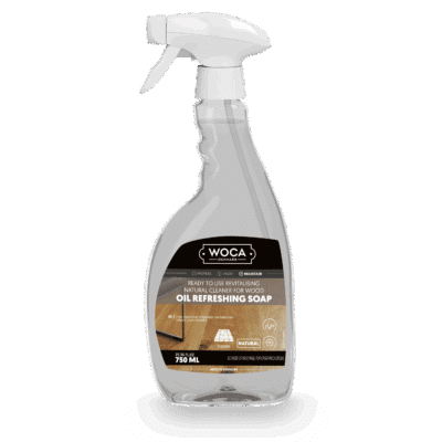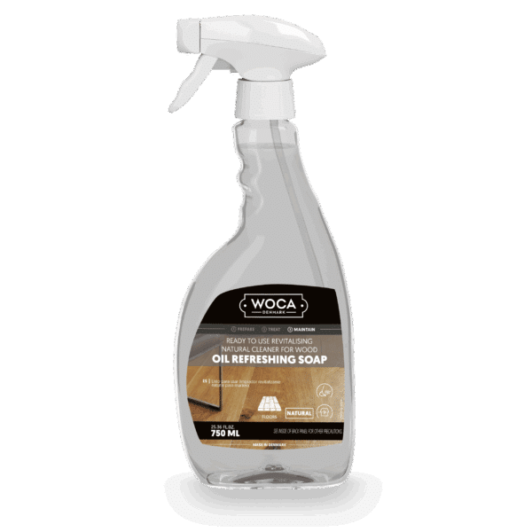 Surface preparation: use WOCA Wood Stain Remover or WOCA Intensive Wood Cleaner for particular stubborn stains before cleaning and maintaining with Oil Refreshing Soap.